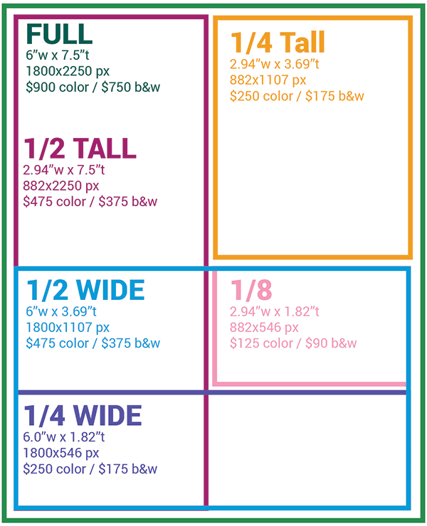 Do you have donated services, equipment, or cash you’d like to offer as in-kind trade for ad space? Let us know! All trade is dollar-for-dollar value, rounding up to the nearest appropriate ad size. For example, $157.00 in donated services would qualify for a quarter-page black & white ad.